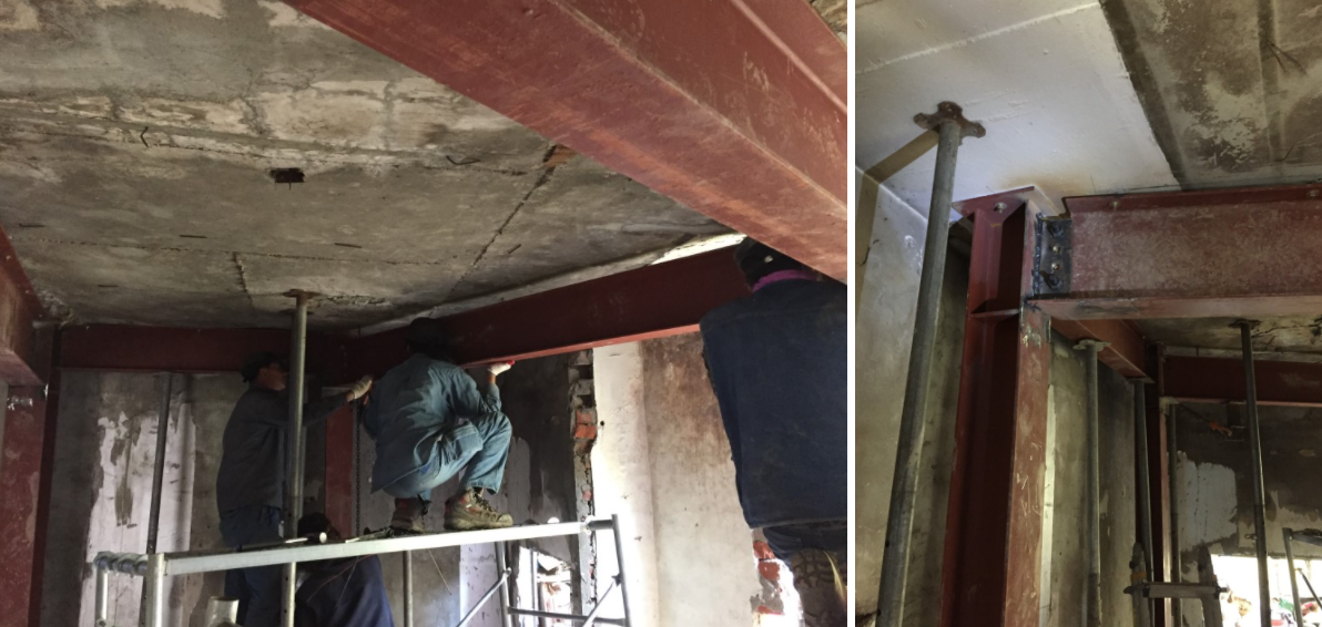 기존 건물에 대한 철골구조보강 작업을 진행하였습니다. 작은 규모의 주택을 리모델링하는 것이어서 작업공간이 협소하고 정확한 칫수등을 맞추기가 어려운 점이 있어 공사가 더디게 진행되고 있습니다. 보강을 위한 철거도 건물에 무리를 주지 않기위해 단계별로 계획하였습니다.