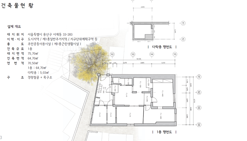 기존에 단층 조적 건물을 주민 공동시설로 리모델링하는 프로젝트이다. 현재 낡은 지붕을 철거하고 사실상 건물 전체의 구조를 다시 잡는 프로젝트로 작지만 복잡한 현황 조건들을 해결하는 설계과정이 될 것이다.