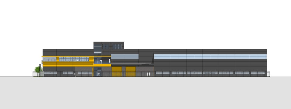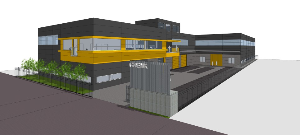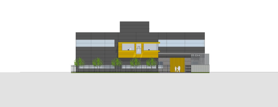 학운3단지의 입면 계획은 단지내 규정에 의해 정해진 색상을 쓰게 되어 있습니다. 대부분의 공장 건물이 여러 편의성 때문에 판넬을 사용하기 때문에 재료와 색상에 따른 제약이 있었습니다. 전체적으로 건축주가 원하는 무거운 색상을 위주로 하되 2층 사무공간은 포인트 색상을 두어 변화를 주었고 1층 마당쪽으로는 판넬위에 타일붙임을 적용하여 자연스러운 텍스쳐의 외관을 형성하여 주변 건물과는 차별화 하면서 근무자에게 금속보다는 따뜻한 느낌이 들도록 계획하였습니다.