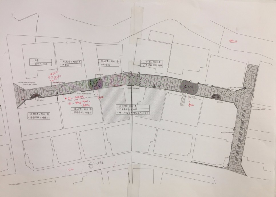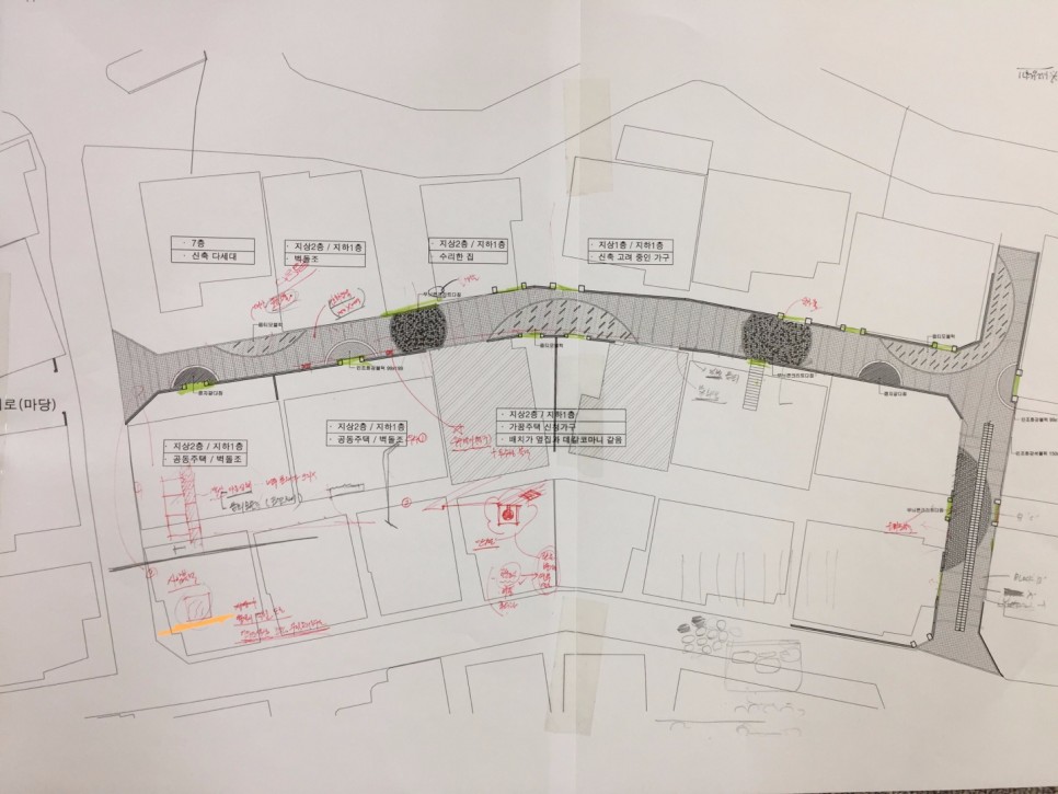 골목길 및 담장과 노후화된 건물의 외관까지 전체적으로 개선이 되어야 하지만, 공적인 영역이 우선되어 바닥 포장을 적극적으로 검토하는 중입니다. 주민설명회등을 열어 협의하려고 노력중이지만 협조가 잘 되지 않아 어려움이 많습니다. 다양한 방법으로 현재 진행중인 계획안을 알리기 위해 노력도 같이 하고 있습니다.