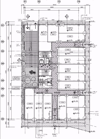 기존에 가리봉동 지역에서 '벌집'이라 불리었던 복잡한 내부구조를 가진 건물이어서 현장 조사후 실시도면을 작성하는 과정에서도 시공성, 마감, 공간 활용성 등 고려한 수정작업이 계속 진행되고 있습니다. 실시도면 작업후에는 내역작업을 거쳐 최종 마무리될 예정입니다
