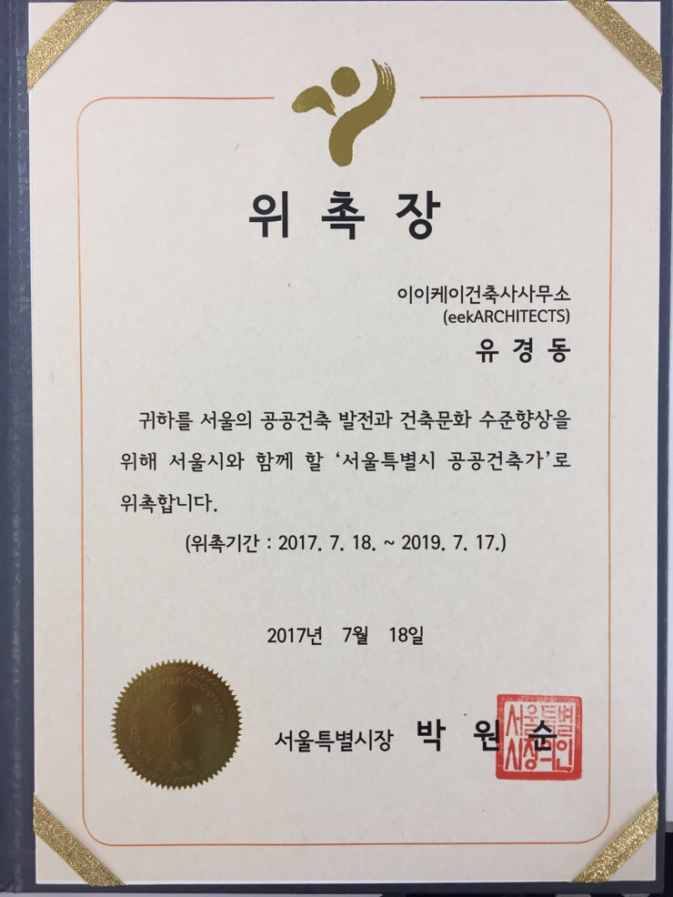 이이케이 건축사사무소가 서울시 공공건축가에 연임되었습니다. 지난 2년의 기간 동안 큰 성과나 대단한 활동을 한 건 아니지만, 다양한 활동에 참여하고 고생도 하면서(?) 도시와 건축을 다양한 관점으로부터 경험하였고 그 과정에서 현실과 행정 사이의 간극을 느끼기도 한 것 같습니다.